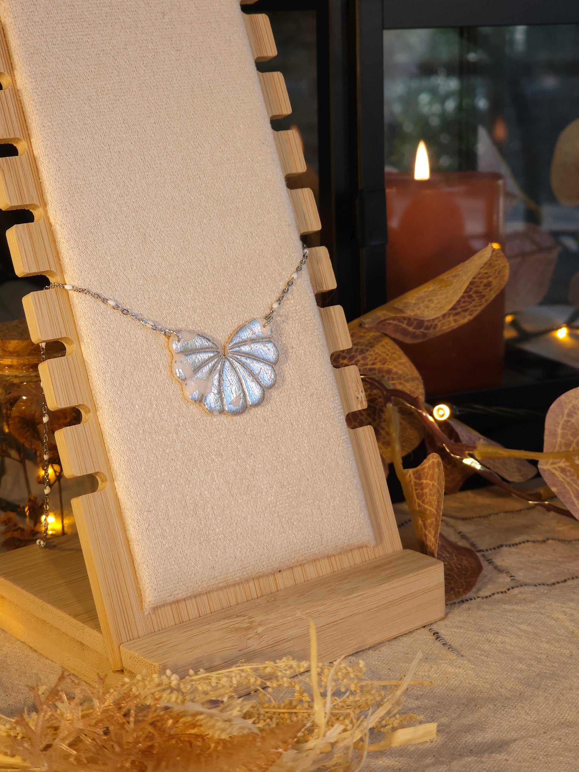 Colliers chics très légers en argile polymère noire ou blanche, recouverte de feuilles d'or et d'argent, avec une chaîne en acier inoxydable doré ou argenté.
